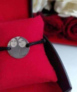Bracelet rond personnalisé avec photo en acier inoxydable 22mm, Cette élégante médaille ajourée d’une photo sera un parfait bijou pour une communion. Personnalisez votre bracelet en choisissant la photo ou le texte, la couleur de votre cordon. La gravure de la médaille en plaque rhodié est réalisée au sein de notre atelier par nos bijoutières expérimentés. Choisissez notre bracelet rond en plaque rhodié et offrez un bijou personnalisé de qualité !