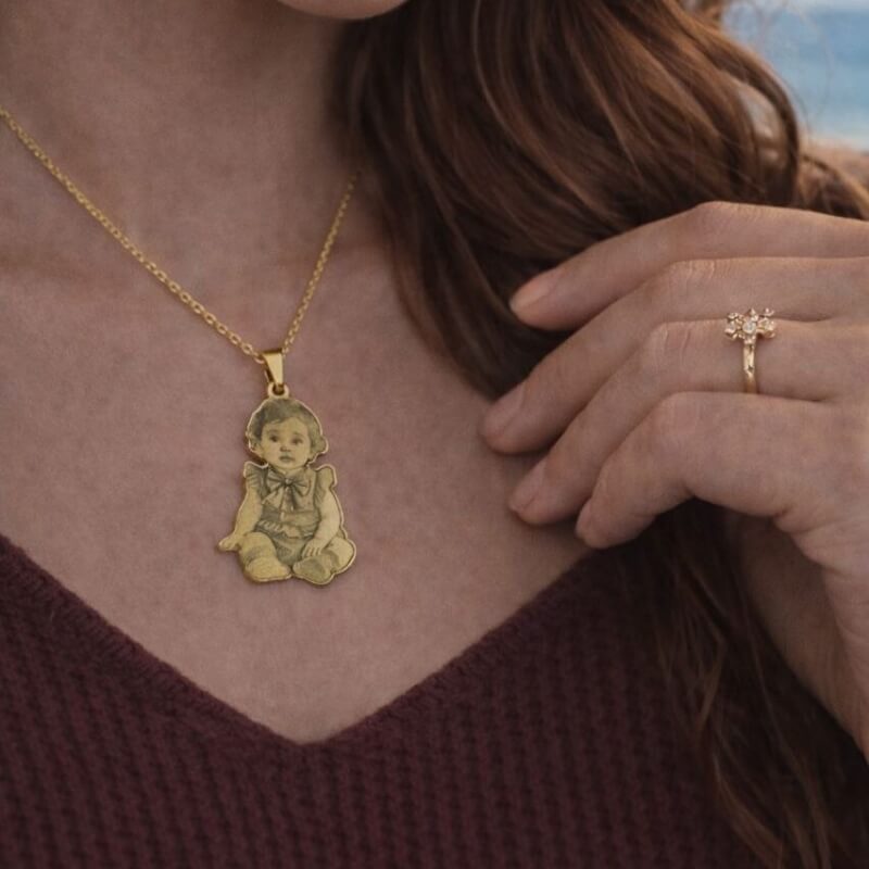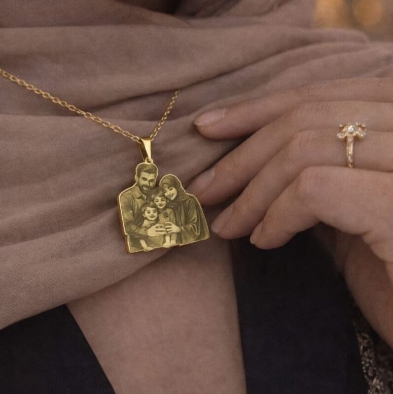 قم بنقش الصورة التي تعني لك الكثير — لحظة، وجه، أو إحساس — على قلادة أنيقة مطلية بالذهب. يتم إنجاز كل قطعة بدقة عالية لالتقاط أدق التفاصيل، لتصبح ذكرى ترافقك بالقرب من قلبك إلى الأبد.