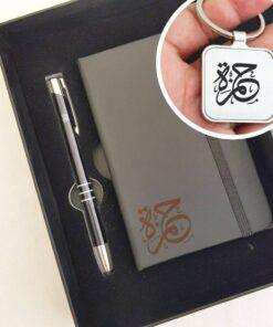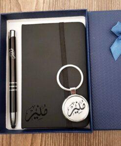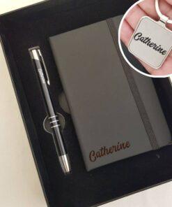 Pack 3 pièces personnalisé avec texte Stylo Bloc-notes Porte clés